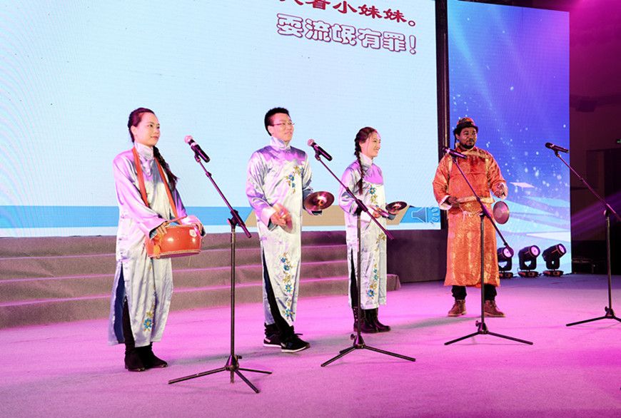 作為這次年會唯一的語言節(jié)目《三言兩語說萌恒》,來自遨森客服部的四位演員“中西合璧”,說跳結(jié)合,以詼諧幽默的表演方式演繹萌恒人自己的故事。