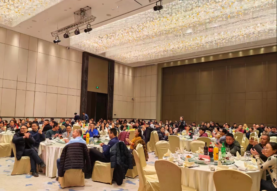 本次晚會不僅準備了精彩的游戲——蒙眼吃香蕉與瓜子接龍,還有大屏幕滾動抽獎、獨唱表演,以及驚喜福袋。游戲環節大家積極參與,團隊配合,默契十足;抽獎環節滿懷期待,中獎者無比欣喜,臉上洋溢出燦爛的笑容;獨唱環節掌聲不斷,大家沉浸其中,意猶未盡,節目一波接一波;最后每桌都在尋找驚喜福袋,并收到了驚喜感滿滿的禮物。
