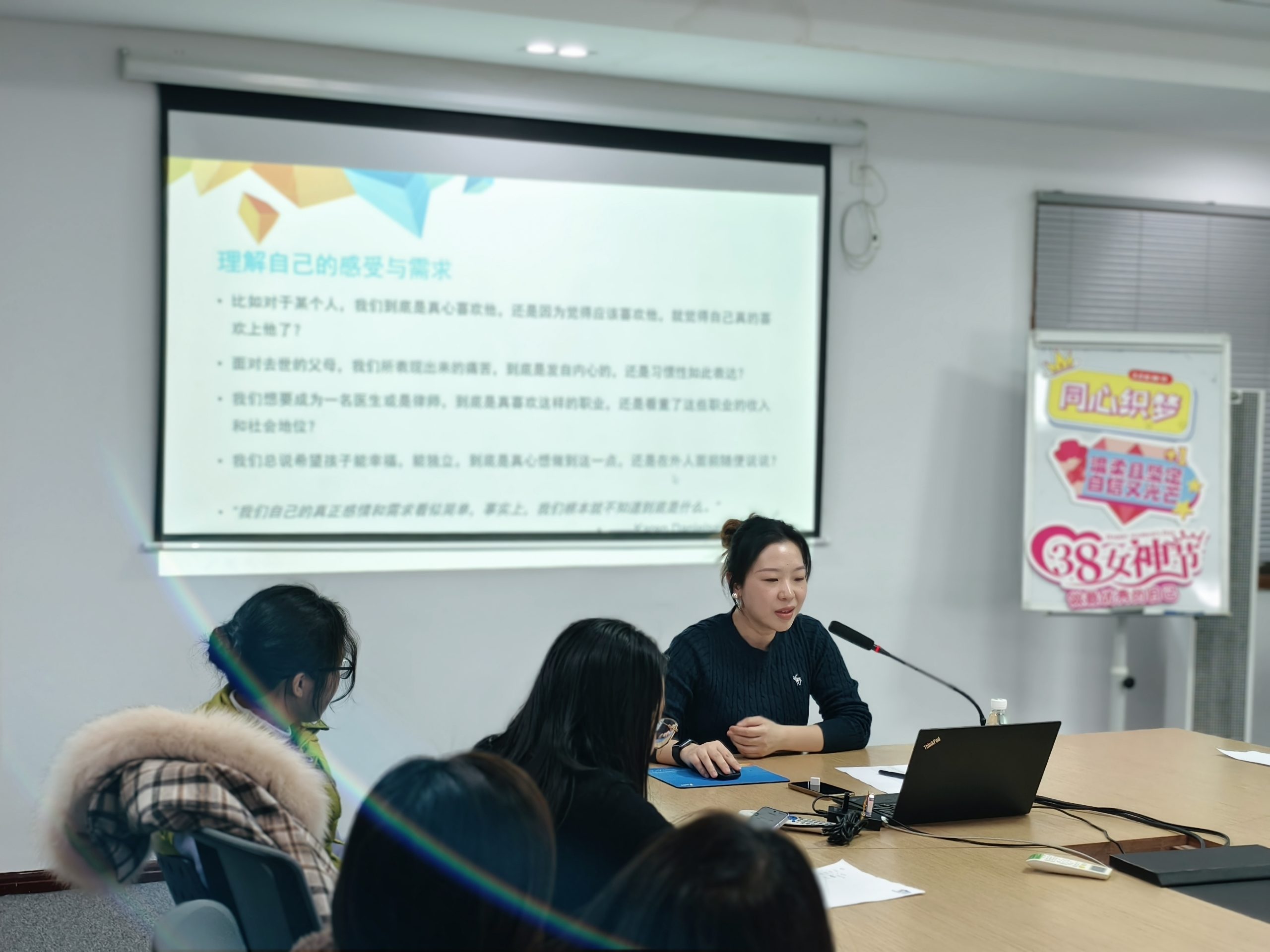 愛自己,是終生浪漫的開始。下午,“愛自己·遇見她力量”心理講座在六樓會議室如期開講,吸引近30名女員工前來參加。主講人是資深心理咨詢師、寧波電臺心理欄目特約嘉賓桑悅赟。