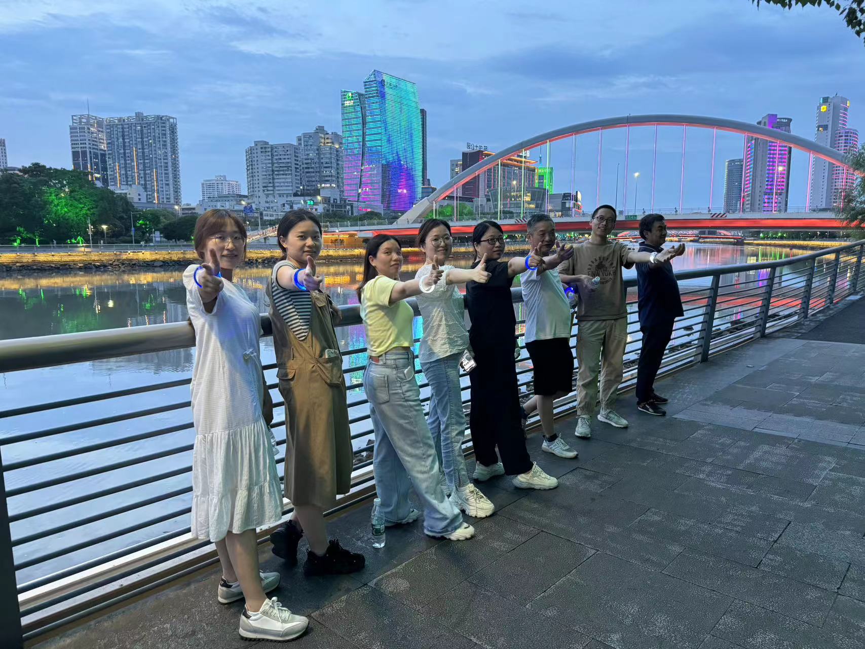 此次徒步路線長約5.6km,共設有澄浪橋和琴橋2個打卡點。所有成員被分為六組,每組小伙伴需到特定的打卡點擺出規定的拍照姿勢并合照,才算任務完成。小伙伴們熱情高漲,紛紛和組員一道擺出絕美造型,配上發光手環,成為江邊一抹亮麗的風景線。讓我們來聽聽成員們對當天活動的感想吧!