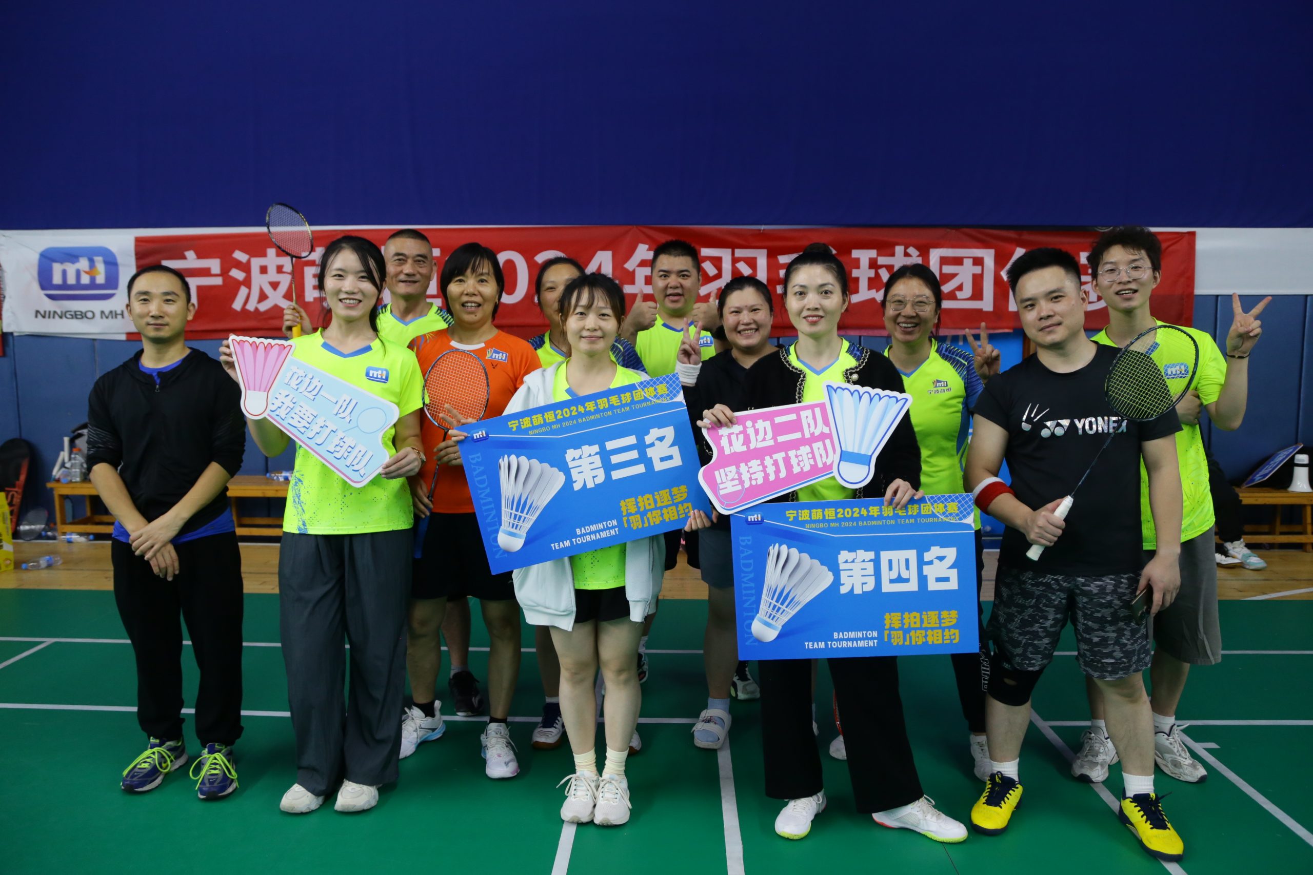 下午一點,萌恒羽毛球團體賽在寧波長勝球館拉開帷幕,比賽以“文明、友誼、拼搏、向上”為宗旨,共有來自莊市片區(qū)、洪塘片區(qū)及長豐片區(qū)的8支隊伍、54名運動員參加。公司領(lǐng)導(dǎo)陳總、徐總也換上運動裝備,加入戰(zhàn)隊,與伙伴們一起并肩作戰(zhàn)。