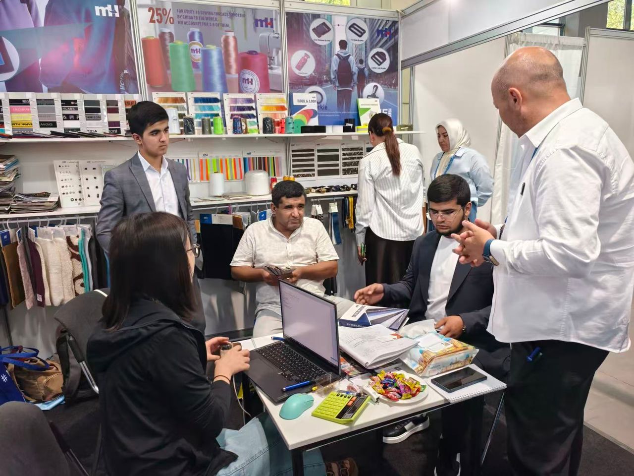 展會期間,我司展出的服裝紡織輔料產品種類齊全,涵蓋縫紉線、扣子、拉鏈、帶子及面料等,吸引了大量專業買家駐足交流。其中,滌綸縫紉線、繡花線、拉鏈、針織松緊帶、反光帶和襯布等產品詢問度較高。通過現場與客戶的深入交流,業務團隊了解到,烏茲別克斯坦及中亞紡織市場正呈現出良好的發展態勢,但隨之而來的是日益激烈的市場競爭。本地客戶普遍注重性價比,并傾向于直接與制造商合作,這對我們提出了更高要求:不僅需提供質量過硬的產品,還需具備明顯的價格競爭優勢。