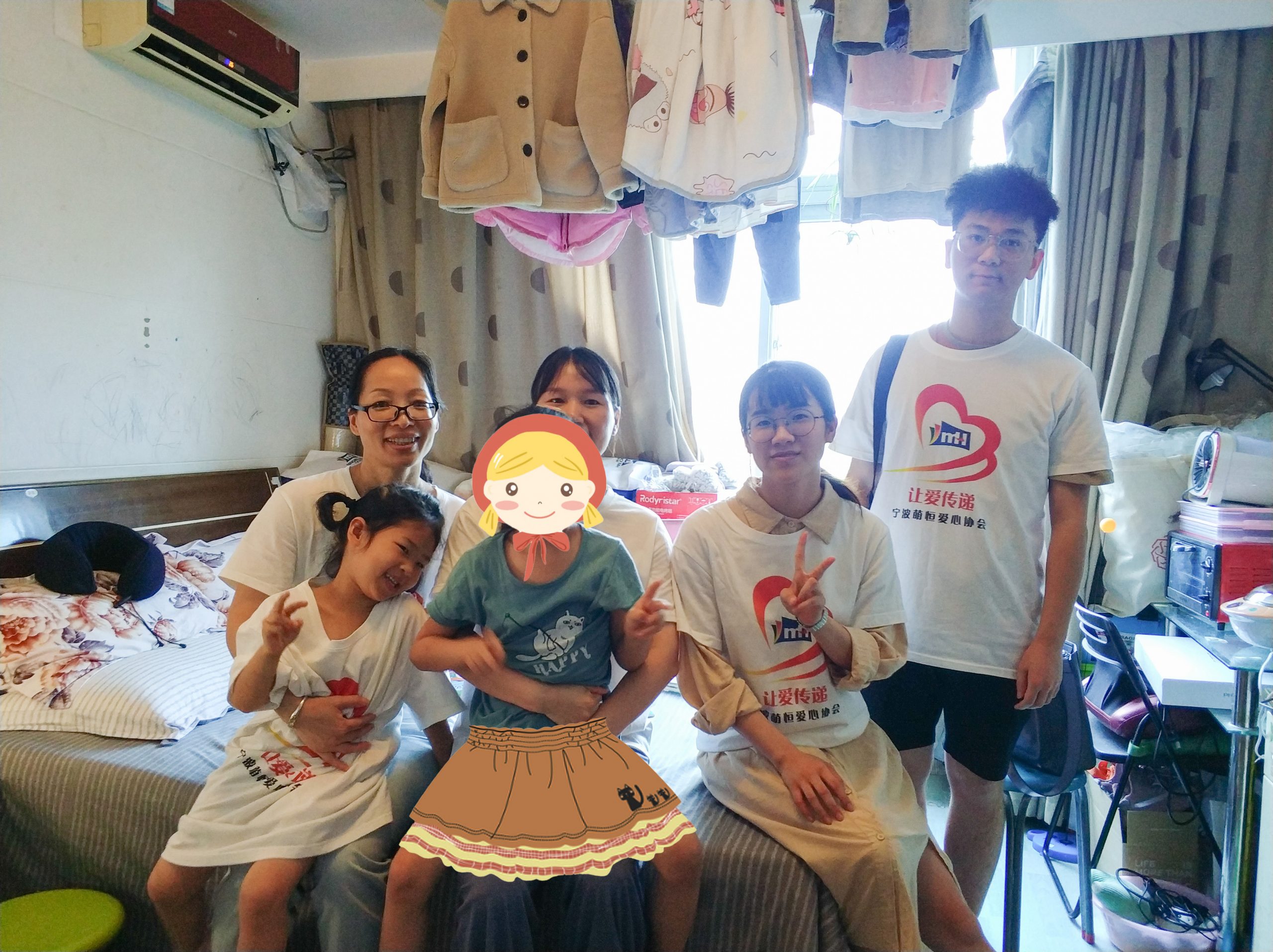 小怡今年剛完成中考,考進了余姚職業技術學校會計專業,相信不久的將來就可以反過來照顧年邁的外公外婆和精神狀態不太好的爸爸;佳佳也同樣是今年參加中考,她選了自己喜歡的烹飪專業,她說她喜歡西式糕點,希望學成之后能憑這一技之長挑起家里的擔子,照顧好辛苦撫養自己長大的爺爺奶奶;小威已經在奉化技術學校上了一年學了,他學的是旅游參觀專業,學習也十分認真刻苦,我們去的時候還趴在桌子上完成學校布置的暑假作業;小帆是奉化高級中學高二的學生,她的學習成績很不錯,對未來也充滿希望,相信她一定能考上好的大學,用知識改變命運;小鮑現在就讀于莼湖二中,新學期就要步入高三了,平時寄宿在學校,只有周末的時候才能回家,從學校到家里的路上得花費1個半小時;小欽是幾個孩子里最大的,去年就已經考上大學了,在聊起跟以往學習生活全然不同的大學時光,她顯得還有些迷茫不適應,志愿者們就鼓勵她在校期間可以多參加跟本專業相關的社團和活動,鍛煉和積累經驗,為今后的實習和工作做準備。
