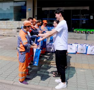 剛出梅,高溫就席卷了寧波,在這炎炎夏日,萌恒義工們將公司精心準備的水果、銀耳、五谷禮盒、毛巾禮盒、沐浴露等夏季清涼禮品送到這些堅守在第一線的英雄們手里,將溫暖和關愛帶給他們,向努力在最基層的城市工作者致敬!