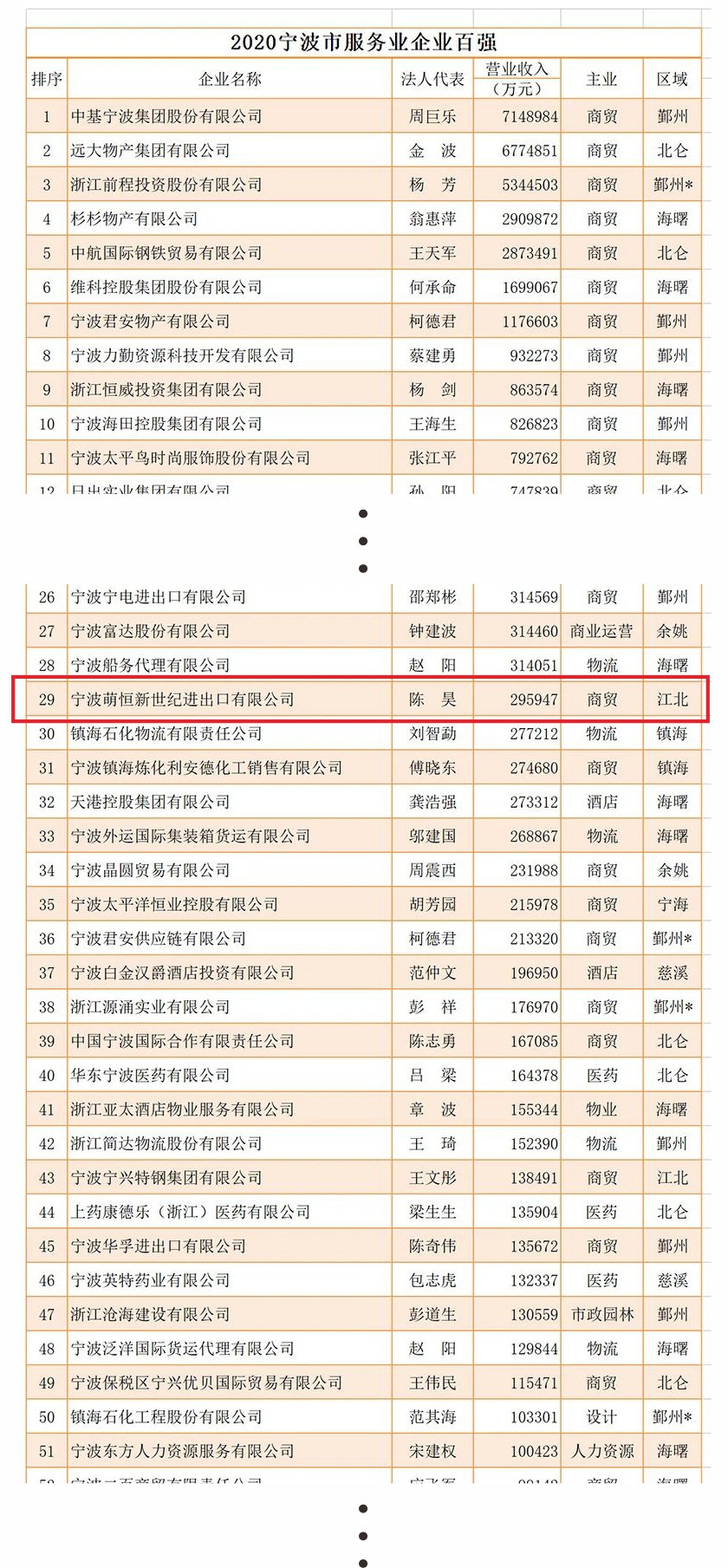 8月27日,寧波市企業聯合會、寧波市企業家協會、寧波市工業經濟聯合會共同推出2020寧波市企業百強榜。萌恒新世紀進出口有限公司名列“2020寧波市服務業百強”第29位,比去年提升了5位。寧波市委副書記、市長、市政府黨組書記裘東耀到會并作重要講話。