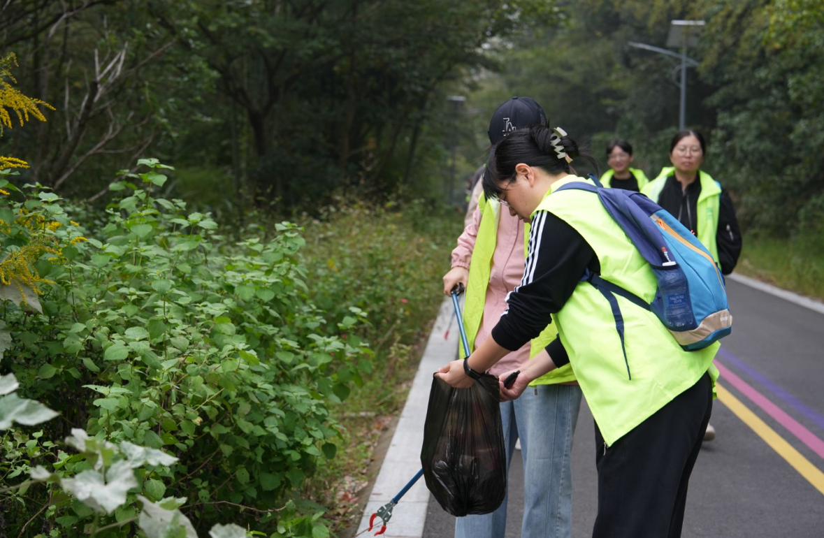 本次活動將體育鍛煉與環(huán)保公益相結(jié)合,讓每一步都踏得格外有意義。沿途,大家手持垃圾夾和環(huán)保袋,細(xì)心撿拾步道及草叢中的塑料瓶、包裝袋、煙頭等丟棄物,踐行“無痕山林”的環(huán)保理念,所過之處更顯潔凈。熒光綠的小馬甲,成了秋日山野間一道亮麗的風(fēng)景線,展現(xiàn)出萌恒人良好的精神風(fēng)貌與社會擔(dān)當(dāng)。