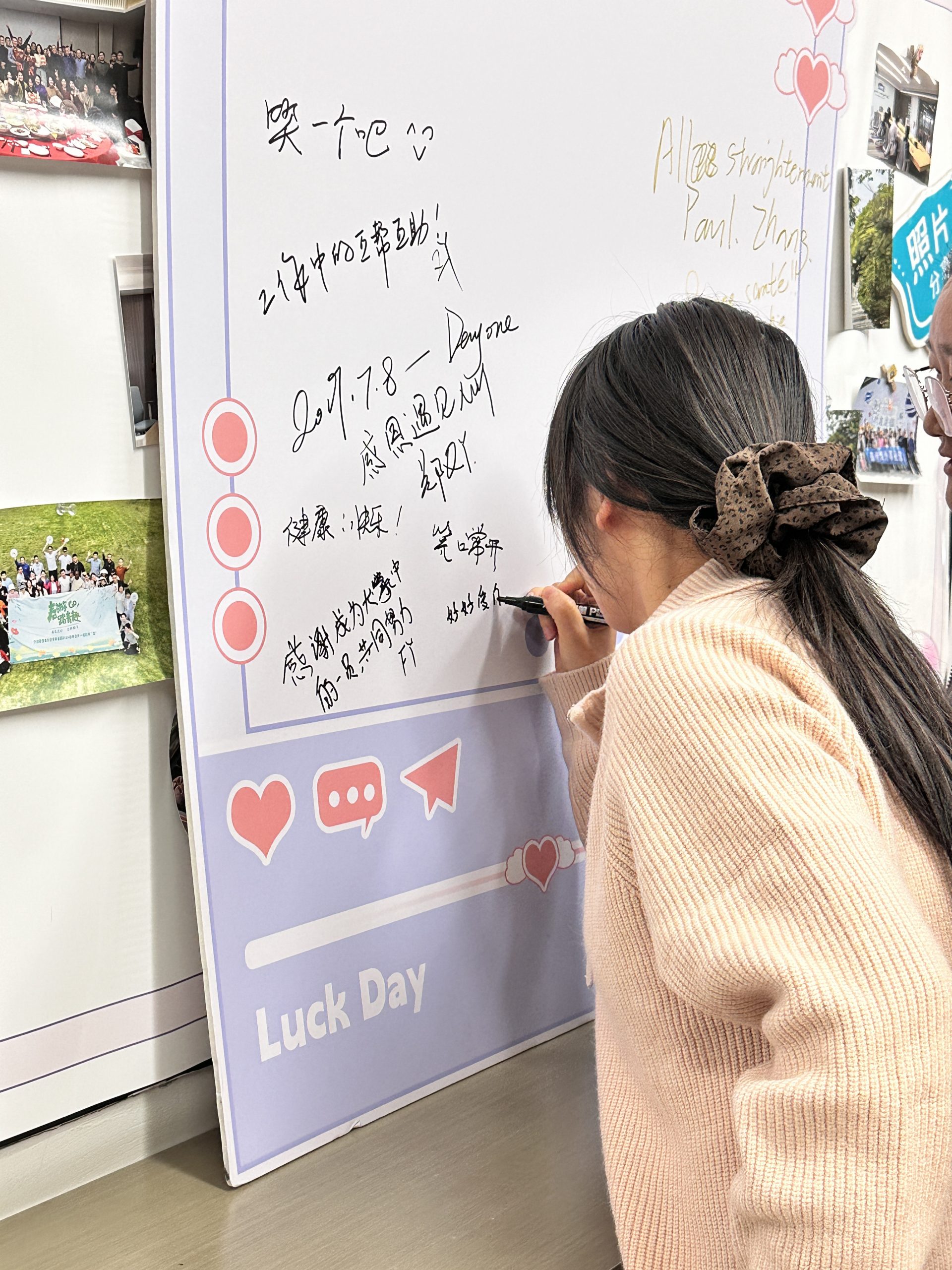 半小時的活動,吸引著越來越多的人圍觀,此起彼伏的笑聲,有不少人舉著手機(jī)留下暖心瞬間,連平時敲代碼敲到 “入定” 的程序員都駐足停留。這個感恩節(jié),沒有復(fù)雜的流程,只有推瓶子時的輕響、起哄聲里的熱鬧,和全員眼底藏不住的開心——畢竟最暖的感恩,從來都是和這群人一起,哪怕是平凡的日子,也能用行動詮釋友愛的定義。